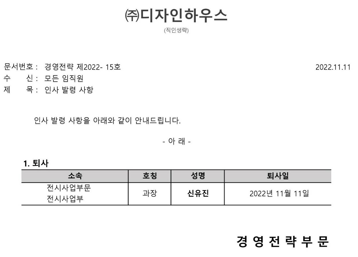 인사 발령 사항 (경영전략 제2022- 15호)