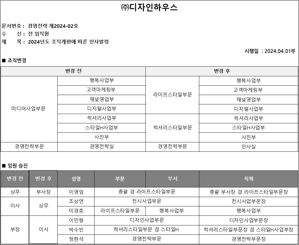 2024년 조직개편 인사발령